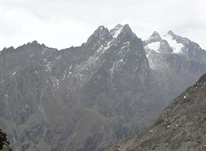 The second highest peak in the Rwenzoris enclosing the upper Bujuku Valley
